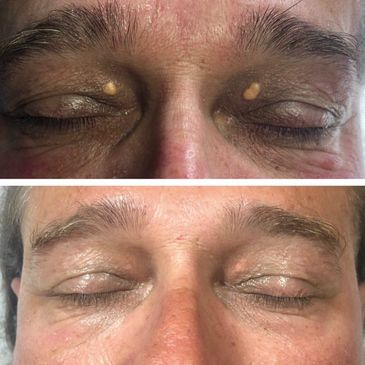 Xanthelasma palpebrarum (cholesterol deposits) is a benign condition characterized by the development of soft, semisolid, yellow Xanthelasma palpebrarum papules or plaques containing cholesterol. These deposits are typically found on the inner aspect of the eyes, most commonly along the corners of the upper and lower eyelids. Generally 1 to 2 relatively painless treatments with the Skin Classic for renewed skin.