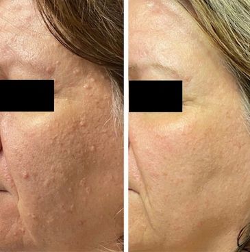 Sebaceous Hyperplasia is a common, harmless skin condition characterized by enlarged sebaceous (oil) glands, often appearing as small, soft, yellowish bumps on the face, especially around the forehead, cheeks, and nose. These enlarged glands produce excess sebum, the skin's natural oil. While typically harmless, sebaceous hyperplasia can be a cosmetic concern. Generally 1 to 2 relatively painless treatments with the Skin Classic for renewed skin.